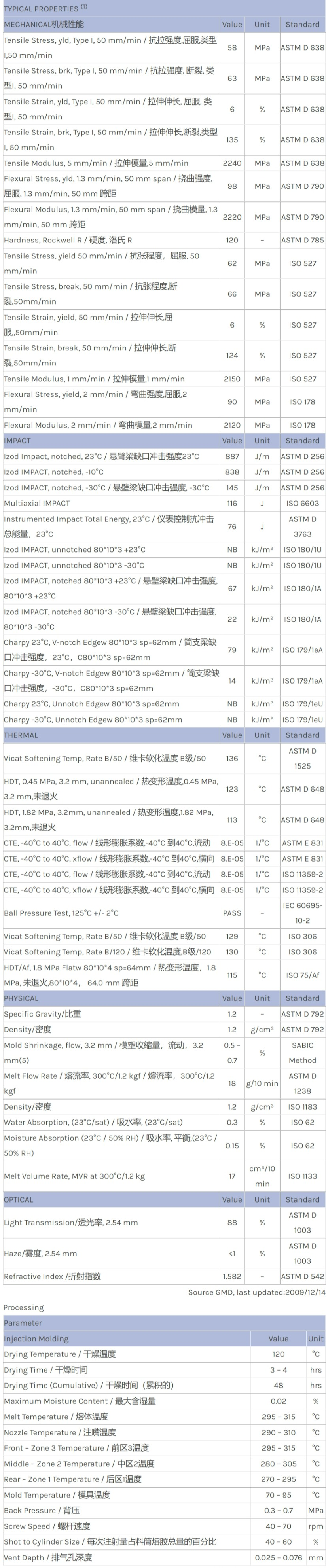应用范围: 产品描述 LEXAN PC EXRL0687物性表 18 MFR LEXAN High Flow Ductile Copolymer UV stabilized