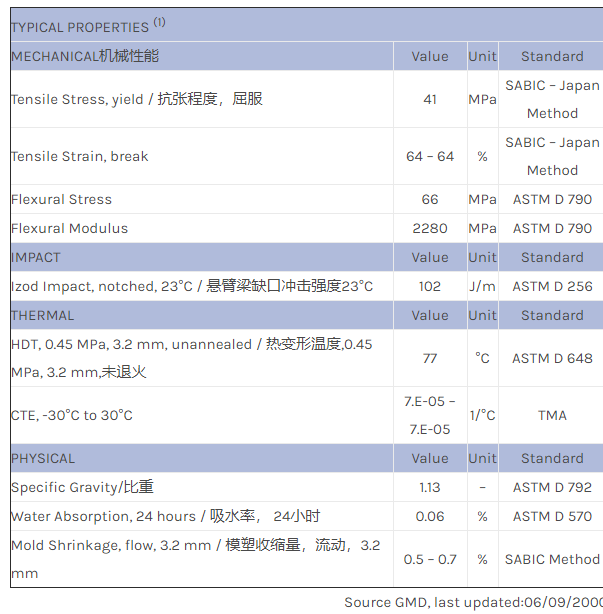 应用范围:产品描述NORYL PPO HGN8201物性表